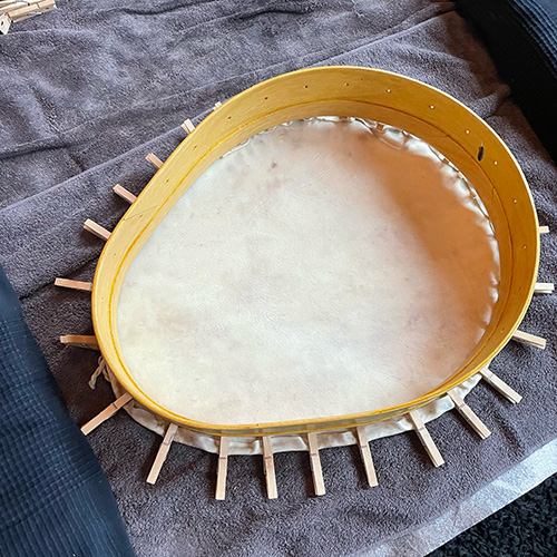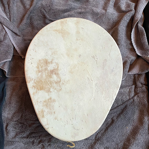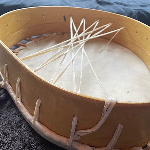 De inspiratie voor de vorm van deze drum komt van de Sami en gaat over 'samen'. Samengaan van twee ogenschijnlijke tegenpolen in een. Van de vrouw, in dit geval de gever en de man, als ontvanger. Het samengaan van hout en huid, van zuidelijke Afrika (Movenguihout) en het noordelijke Noorwegen (rendierhuid). Het samenkomen van al deze complementaire werelden gaat moeiteloos, mits afgestemd. Het buigen van het gestoomde hout liet overduidelijk zien dat voelen en in contact zijn met het hier en nu de enige manier is om zonder barsten of breken een nieuwe vorm aan te kunnen nemen.